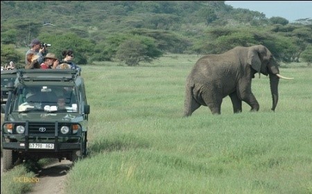 Transportation in 4×4 vehicle with pop up roof for easy viewing and photos taking