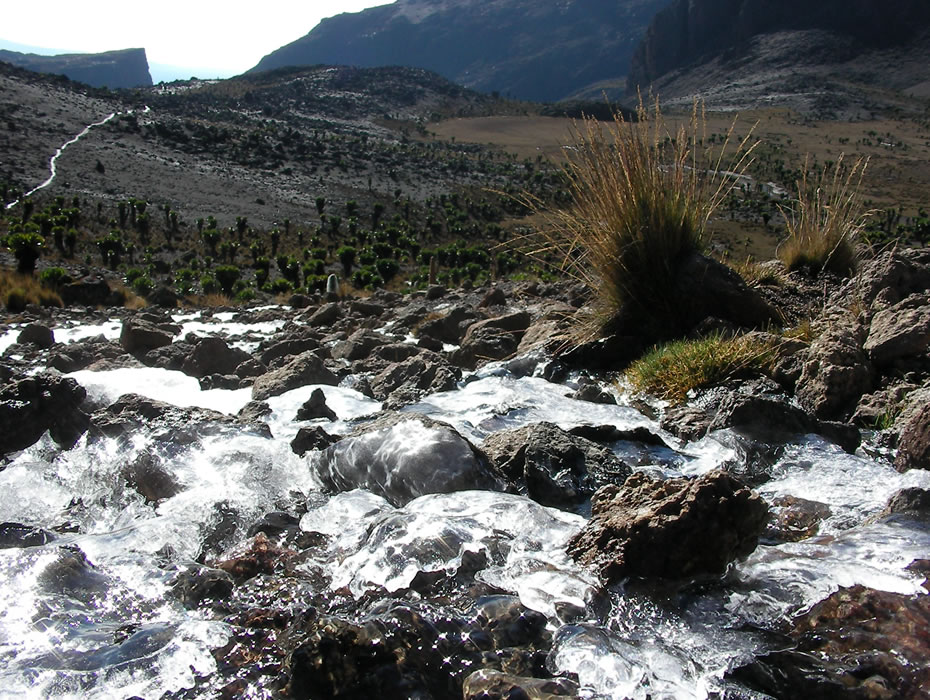 A short walk to the end of the forest line from where you hike across the marshy vertical bog of the lower moorlands. Picnic lunch at the Picnic Rocks before continuing further to Mackinders camp, gaining 1300m in altitude in about 5 hours. Dinner and overnight – Mackinders camp (4300m) Dinner and overnight at the camp.