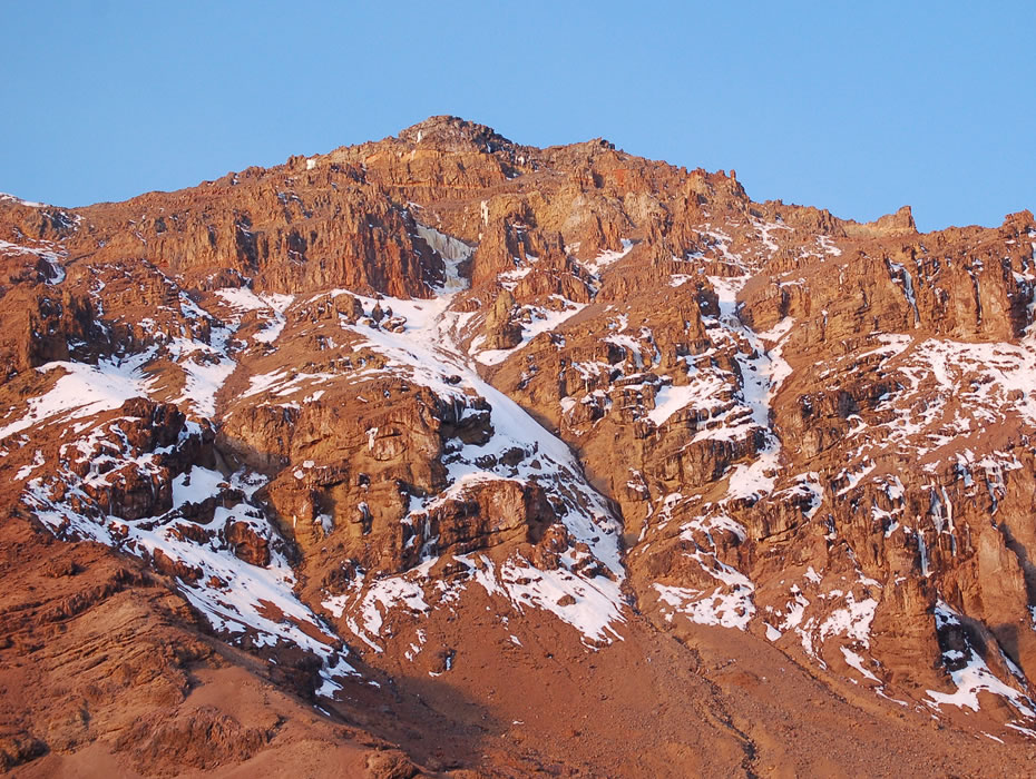 From the Shira Plateau, we continue to the east up a ridge, passing the junction towards the peak of Kibo. As we continue, our direction changes to the southeast towards the Lava Tower, called the “Shark’s Tooth” (elev 4650m/15,250ft). Shortly after the tower, we come to the second junction which goes to the Arrow Glacier. We now continue down to the Barranco Camp. Although you end the day around the same elevation as when you began, this day is very important for acclimatization and will help your body prepare for summit day.