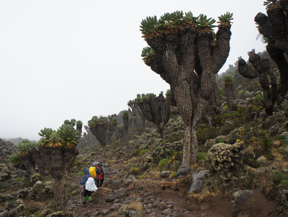 After breakfast, we leave the glades of the rain forest and continue on an ascending path, crossing the little valley walking along a steep rocky ridge, covered with heather, until the ridge ends. The route now turns west into a river gorge. And time to  rest  dinner  and  overnight at the Shira campsite.